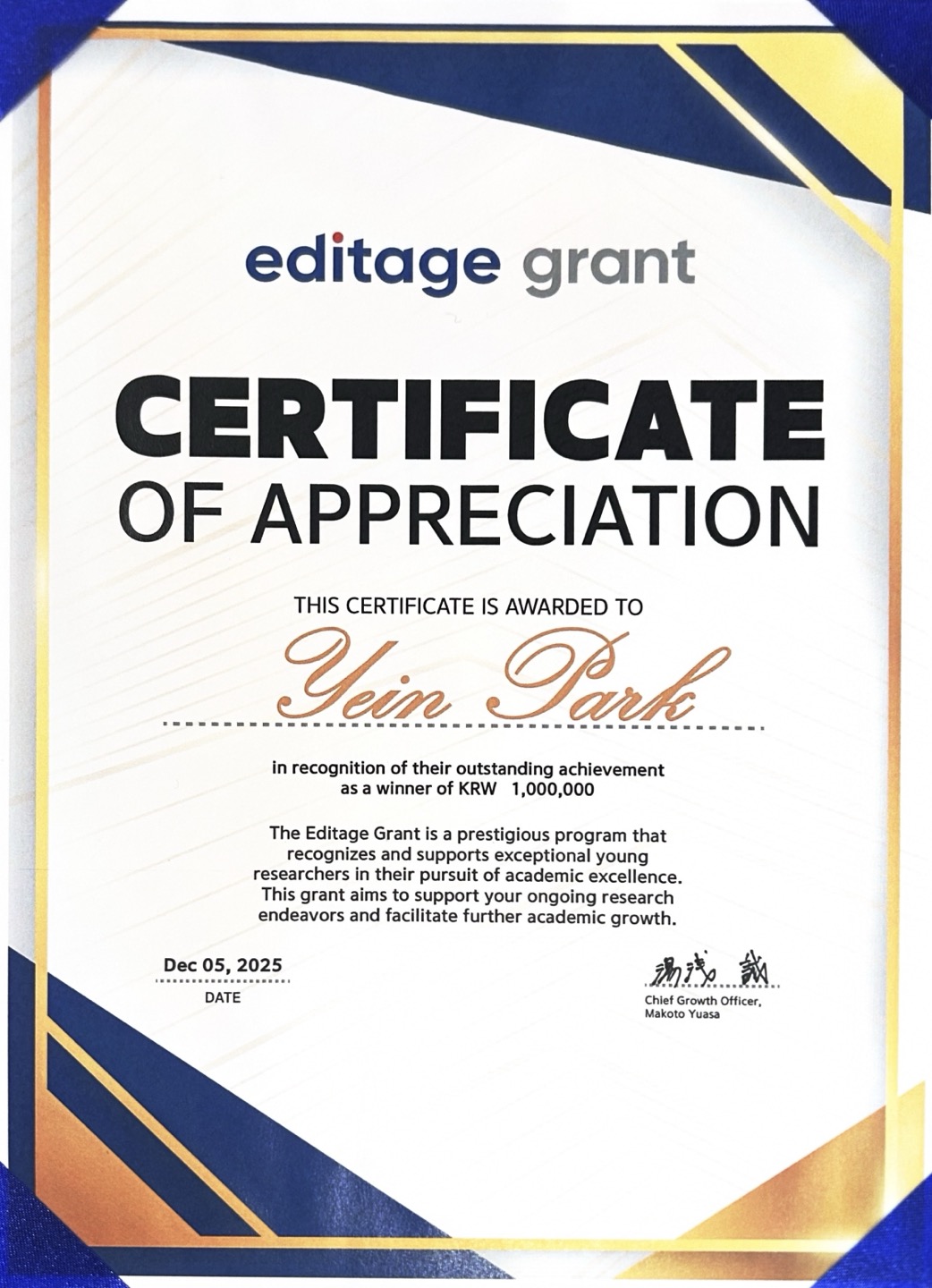 박예인 박사후연구원, 2025 제2회 에디티지 신진 연구자 대상 장학금 3등 수상