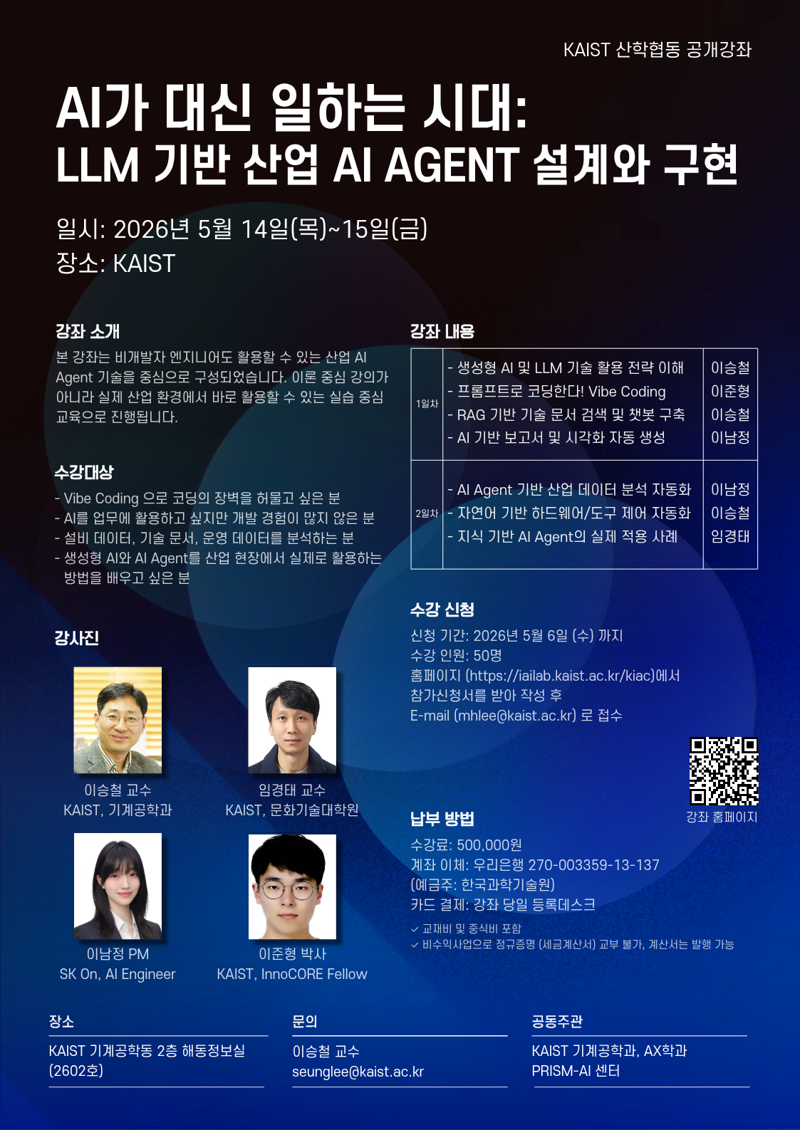 산업 AI Agent & Vibe Coding 실전 산학 강습회: 디지털 동료와 함께하는 업무 혁신 (2026.05.14.-15. )